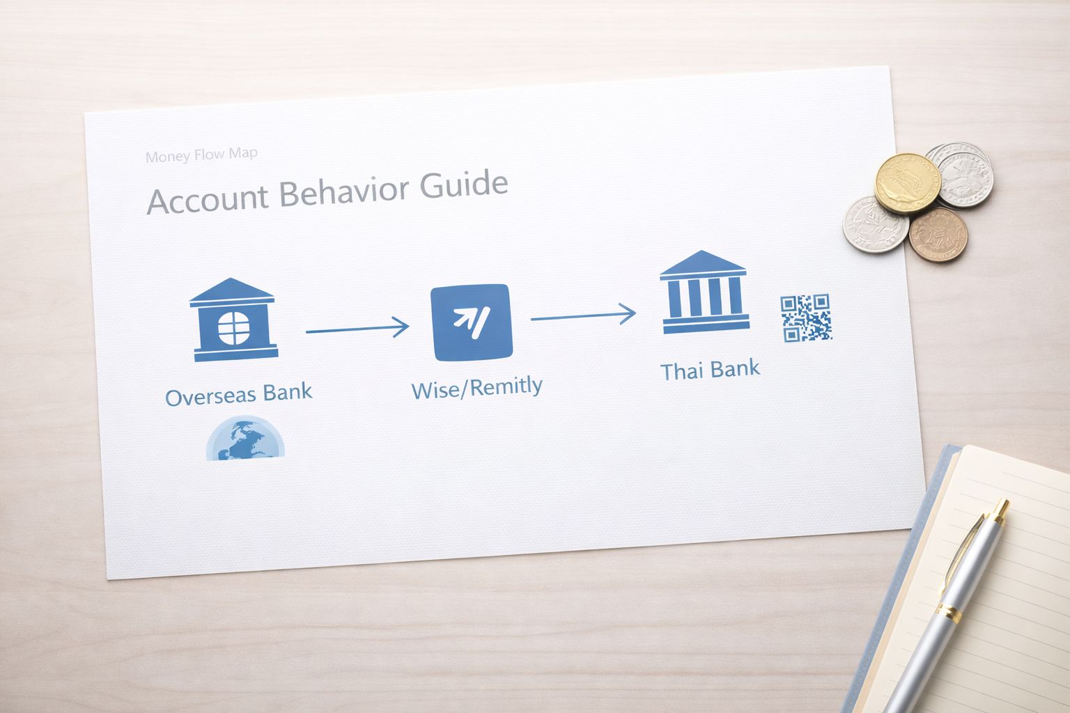 How to design your Thailand money flows – from overseas income to Thai spending – using banks, Wise/Remitly, and QR payments.
