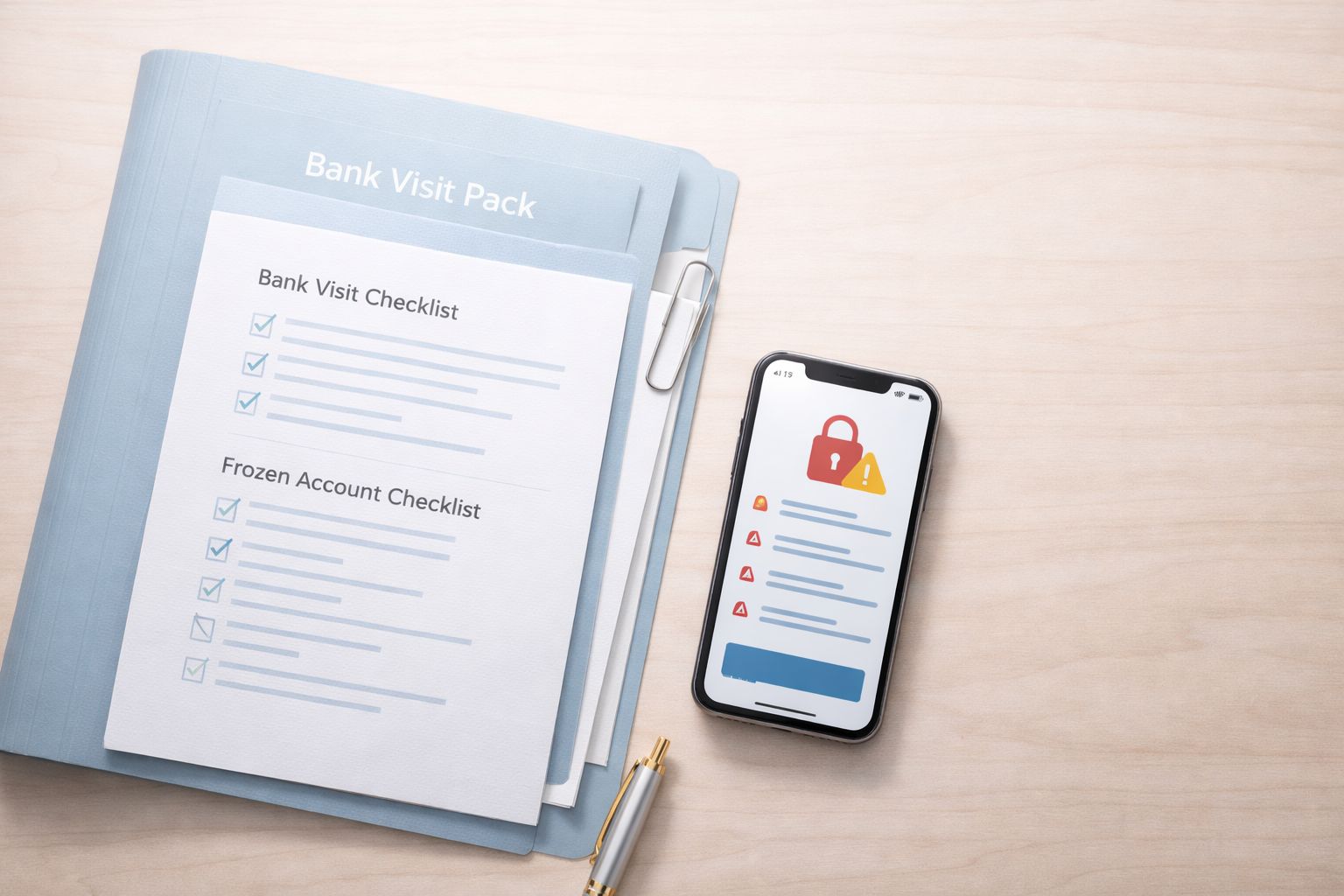 A panic‑proof action plan for confirming what’s happened, preparing documents, talking to the branch, and protecting your access to funds.