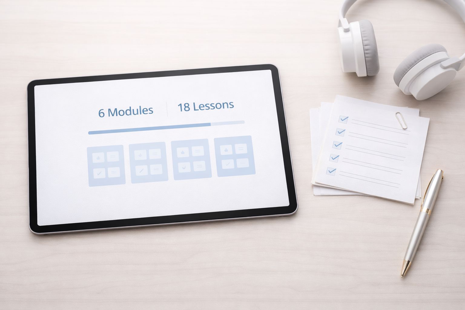 The 18 short, focused lessons are designed to be easy to get through — most are around 4 to 5 minutes long. Each one covers a single step, risk, or decision, so you can make fast progress without feeling overwhelmed and quickly return to exactly what you need later.